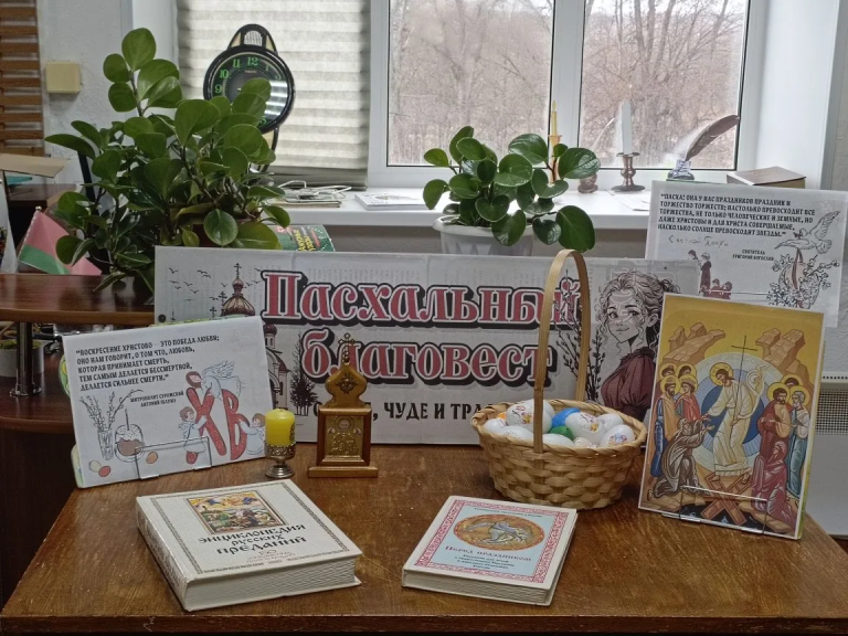 12 апреля- Пасха, праздник с глубоким смыслом и традициями. В преддверии праздника в библиотеке оформлена настольная экспозиция «Пасхальный благовест».